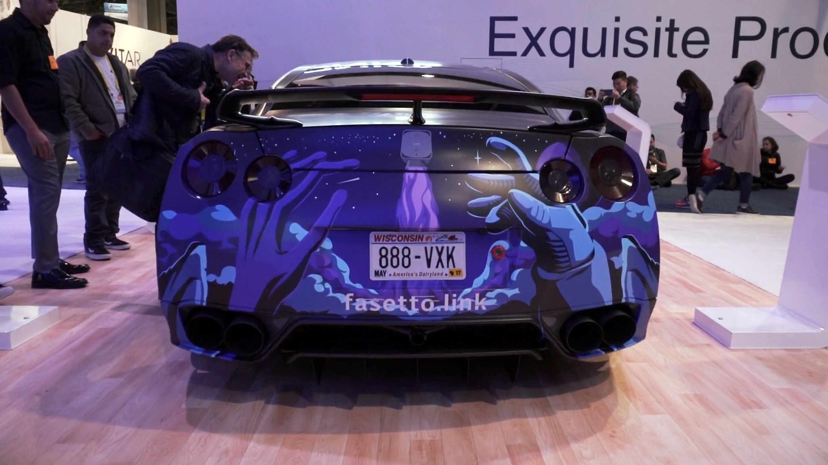 We created the design for the marketing handouts for the event, as well as the real hero piece, pulling in Spain's finest illustrative duo, VanilaBCN, to work their magic on a full, matt finish, out of this galaxy, vehicle wrap for a Nissan GTR. This took pride of place on the impressive Fasetto stand in Las Vegas.
